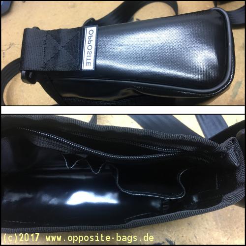 Die Grundfarbe dieser Tasche ist schwarz, auf Wunsch können wir auch jede andere unserer Farben realisieren.