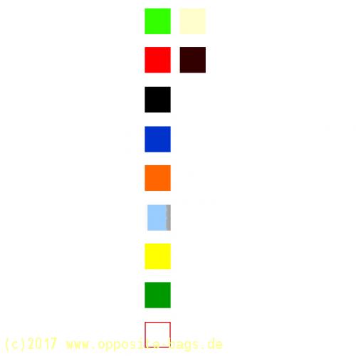 Wählen Sie unten eine der folgenden Farben: weiß; eierschale; gelb; orange; rot; hellblau; blau; grün; hellgrün; silber; braun; schwarz